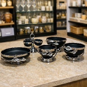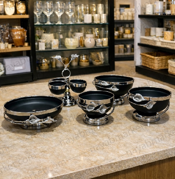 سرویس پذیرایی فلزی طرح گل لیلیوم تلفیقی از زیبایی و کارایی. اگر دنبال یک سرویس پذیرایی زیبا، بادوام و خاص هستید که میز شما رو چشمگیر و منحصربه فرد کنه، سرویس فلزی طرح گل لیلیوم همون انتخابیه که دنبالش بودید. این سرویس با طراحی الهام گرفته از گل لطیف لیلیوم، ترکیبی از سادگی، اصالت و هنره. نقش برجسته ی گل ها روی ظروف، جلوه ای طبیعی و لوکس به میز پذیرایی شما میده. برای کسانی که هم زیبایی می خوان و هم کاربرد، این سرویس یه انتخاب بی نقصه. جنس فلزی با کیفیت بالا باعث میشه هم سبک باشه، هم مقاوم. روکش رنگ ثابت داره که با شستشو تغییر رنگ نمیده، فقط کافیه با دست و اسفنج نرم تمیزش کنید. ترکیب کاربردی و کامل سرویس شامل: